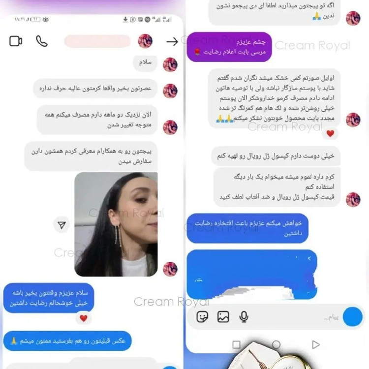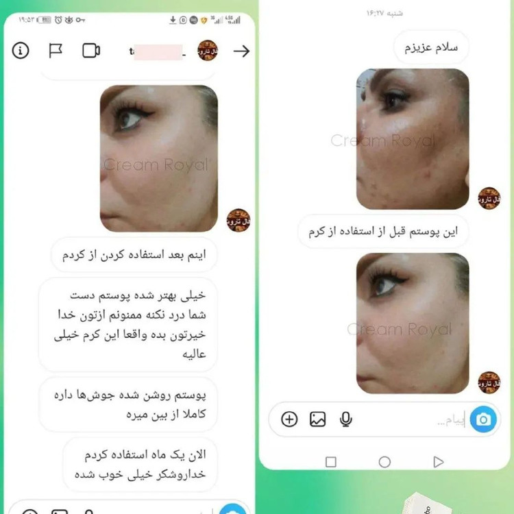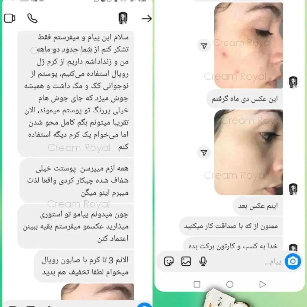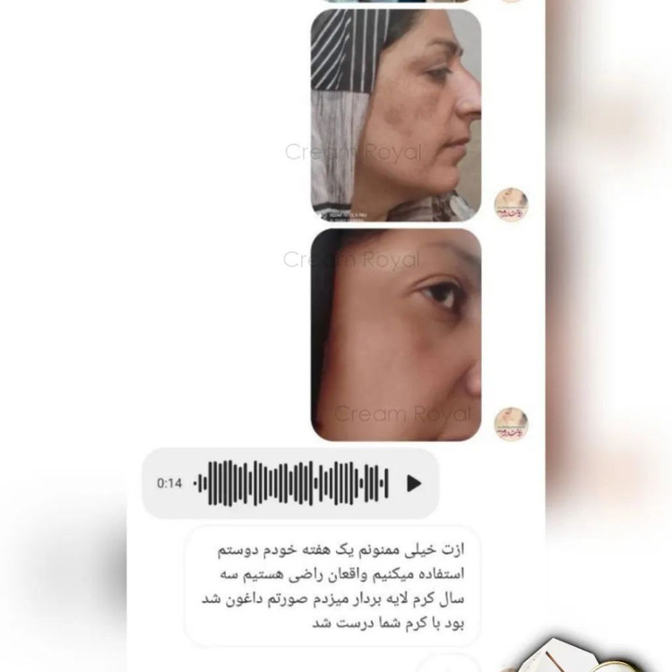 کرم ضد لک و جوانساز رویال با استفاده از این کرم در بازه زمانی کوتاه با لک های صورتتون خداحافظی خواهید کرد این کرم کاااملا گیاهیه و خداروشکر هیییچ گونه افزودنی غیر طبیعی نداره این کرم بر پایه ژل رویال و موم عسل، آلوئه ورا وچندین روغن و عصاره گیاهان دارویی است که تماما برای رفع لک و شفافیت و جوانسازی پوست مفیده. نا گفته نماند که خواص معجزه اسای این کرم تخصصی محدود به رفع لک نمیشه، و همزمان چندین کار مهم دیگه برای پوستتون انجام میده، مهم تری ویژگی مثبت این کرم تخصصی اینه که علاوه بر رفع لک، پوست رو فوقالعاده روشن و جوان میکنه ( 10 سال جوان تر میشی) . . دوره مصرفی این کرم بین 4 90 روزه، بسته به نوع لک و میزان قدمت لک تغییرات در بازه زمانی مختلف ایجاد میشه(بعضی از لک ها در دو الی سه هفته استفاده از این کرم از بین میره و بعضی لک ها نیاز به مدت زمان بیشتری دارن) ، اما اصل نتیجه قطعی و تضمینیه رفع لک بارداری(ملاسما) از بین برنده انواع لک (کک و مک) جوان سازی و لیفتینگ پوست از بین برنده منافذ باز پوست رفع جوش های سر سیاه کلاژن سازی آب رسانی شفاف کننده پوست (5 تا 10 درجه) از بین برنده تیرگی زیر چشم از بین برندن لکه آفتاب رفع جوش و آکنه های ناشی از جوش حجم کرم 20 گرم مناسب برای استفاده سه ماه ، بهترین شرایط برای نگهداری از این کرم داخل یخچاله چون هیچ گونه افزودنی غیر طبیعی و نگهدارنده نداره جهت مشاوره و یا واتساپ پیام دهید #کرم_رویال #سفیدکننده_صورت ۰
