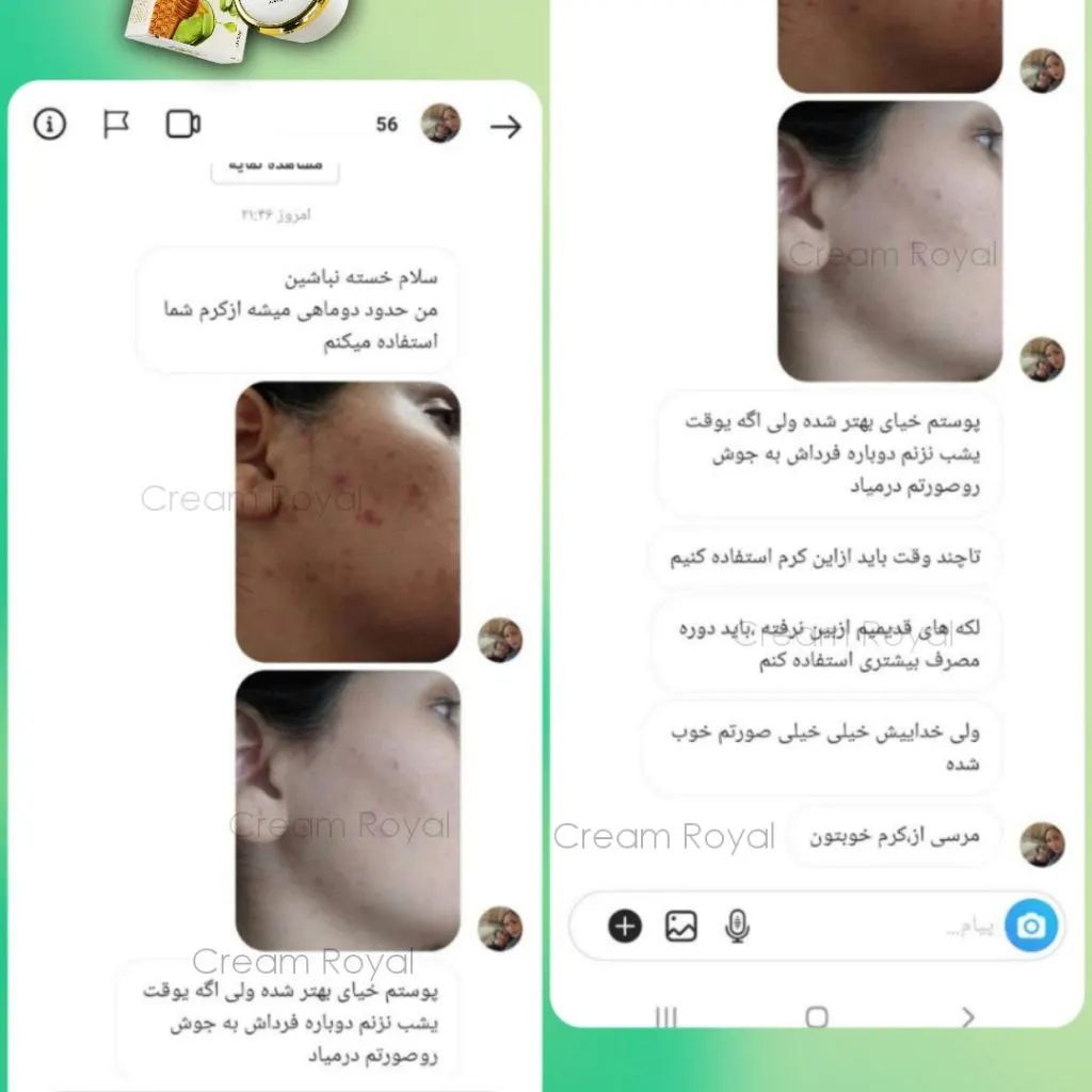 کرم ضد لک و جوانساز رویال با استفاده از این کرم در بازه زمانی کوتاه با لک های صورتتون خداحافظی خواهید کرد این کرم کاااملا گیاهیه و خداروشکر هیییچ گونه افزودنی غیر طبیعی نداره این کرم بر پایه ژل رویال و موم عسل، آلوئه ورا وچندین روغن و عصاره گیاهان دارویی است که تماما برای رفع لک و شفافیت و جوانسازی پوست مفیده. نا گفته نماند که خواص معجزه اسای این کرم تخصصی محدود به رفع لک نمیشه، و همزمان چندین کار مهم دیگه برای پوستتون انجام میده، مهم تری ویژگی مثبت این کرم تخصصی اینه که علاوه بر رفع لک، پوست رو فوقالعاده روشن و جوان میکنه ( 10 سال جوان تر میشی) . . دوره مصرفی این کرم بین 4 90 روزه، بسته به نوع لک و میزان قدمت لک تغییرات در بازه زمانی مختلف ایجاد میشه(بعضی از لک ها در دو الی سه هفته استفاده از این کرم از بین میره و بعضی لک ها نیاز به مدت زمان بیشتری دارن) ، اما اصل نتیجه قطعی و تضمینیه رفع لک بارداری(ملاسما) از بین برنده انواع لک (کک و مک) جوان سازی و لیفتینگ پوست از بین برنده منافذ باز پوست رفع جوش های سر سیاه کلاژن سازی آب رسانی شفاف کننده پوست (5 تا 10 درجه) از بین برنده تیرگی زیر چشم از بین برندن لکه آفتاب رفع جوش و آکنه های ناشی از جوش حجم کرم 20 گرم مناسب برای استفاده سه ماه ، بهترین شرایط برای نگهداری از این کرم داخل یخچاله چون هیچ گونه افزودنی غیر طبیعی و نگهدارنده نداره جهت مشاوره و یا واتساپ پیام دهید #کرم_رویال #سفیدکننده_صورت ۰